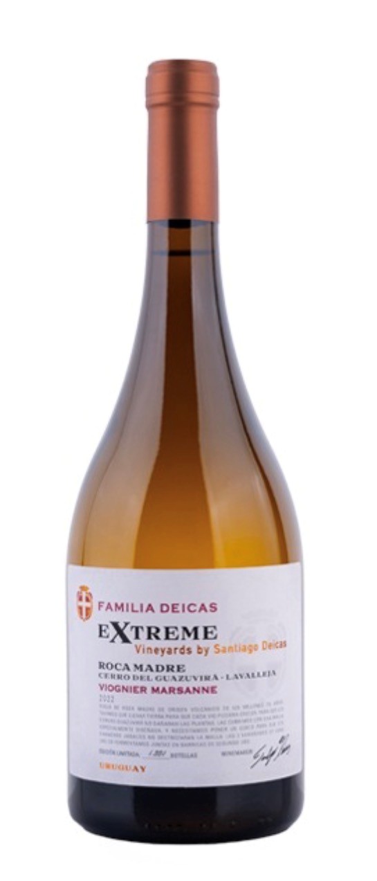 Deze verfijnde witte wijn uit de Extreme Vineyard-serie van Familia Deicas is een blend van 55% viognier en 45% marsanne. De druiven zijn afkomstig van een unieke wijngaard in Progreso (Canelones), waar ze groeien op een rotsachtige ondergrond van kalksteen, leem en klei. Dankzij de invloed van de Atlantische Oceaan en een koel rijpingsproces op 280 meter hoogte, behoudt deze wijn zijn uitzonderlijke frisheid en aromatische kracht.